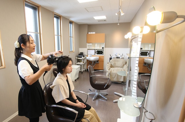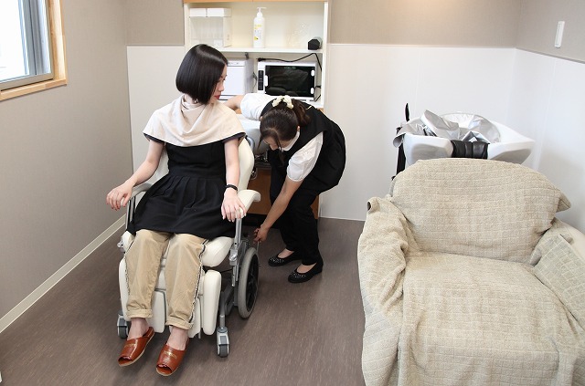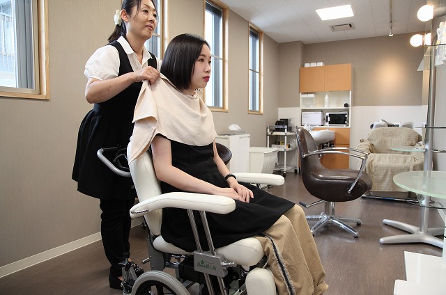 車いすでご来店のお客様の移乗回数を最小限に抑えられるようなサロンづくりを試みています。