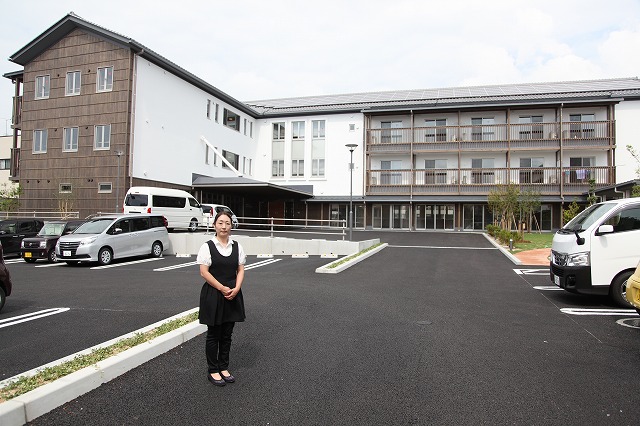 ● 一段上段に建つ本棟の正面入口よりお入りください。駐車場から棟内は、完全バリアフリーです。